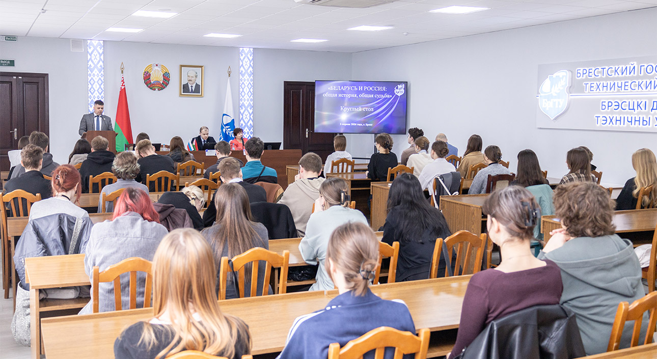 On Unity Day of the Peoples of Belarus and Russia, a roundtable discussion entitled "Belarus and Russia: Common History, Common Destiny" was held at Brest State Technical University. The event was attended by university students and invited speakers: Sergei Zhuk, analyst at the Brest Region Office of the Belarusian Institute for Strategic Studies; Natalia Yalovaya, Vice-Rector for Ideological and Educational Work at Brest State Technical University; and Tatyana Motorina, Labor Veteran and member of the Brest City Council of Veterans.
