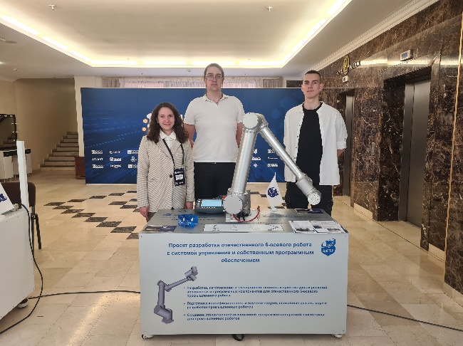 Коллаборативный робот-манипулятор с системой управления для решения задач автоматизации производственных процессов и обучения средствам разработки программного обеспечения для роботизированных систем. Разработано собственное программное обеспечение для решений кинематических задач и задач планирования траектории движения манипулятора. Программное обеспечение реализовано без применения лицензированных библиотек и программных модулей, что обеспечивает технологическую безопасность системы в целом.
