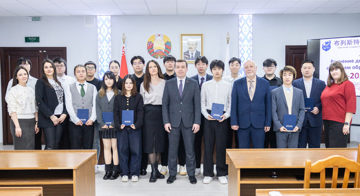 28 января на факультете электронно-информационных систем БрГТУ состоялась церемония вручения дипломов иностранным студентам. В праздничной атмосфере ректор БрГТУ Андрей Николаевич Парфиевич наградил 20 талантливых выпускников специальности «Компьютерная инженерия», успешно освоившим образовательную программу высшего образования на базе неуниверситетского высшего образования (КНР) в рамках экспериментального проекта.